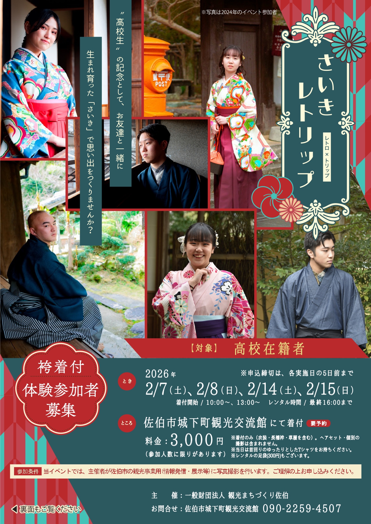 申込フォーム▶ さいきレトリップ ~高校生対象 袴着付体験~