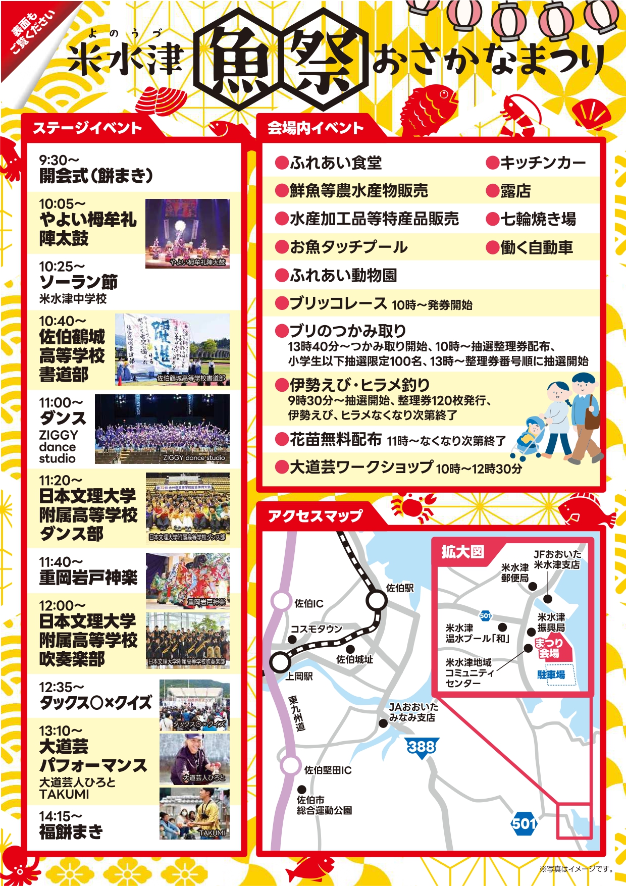 鮮魚や干物等の米水津地域自慢の海の恵みを楽しめるほか、子どもからお年寄りまで広く楽しめる会場内イベントやステージショーが盛りだくさんの内容になっています!