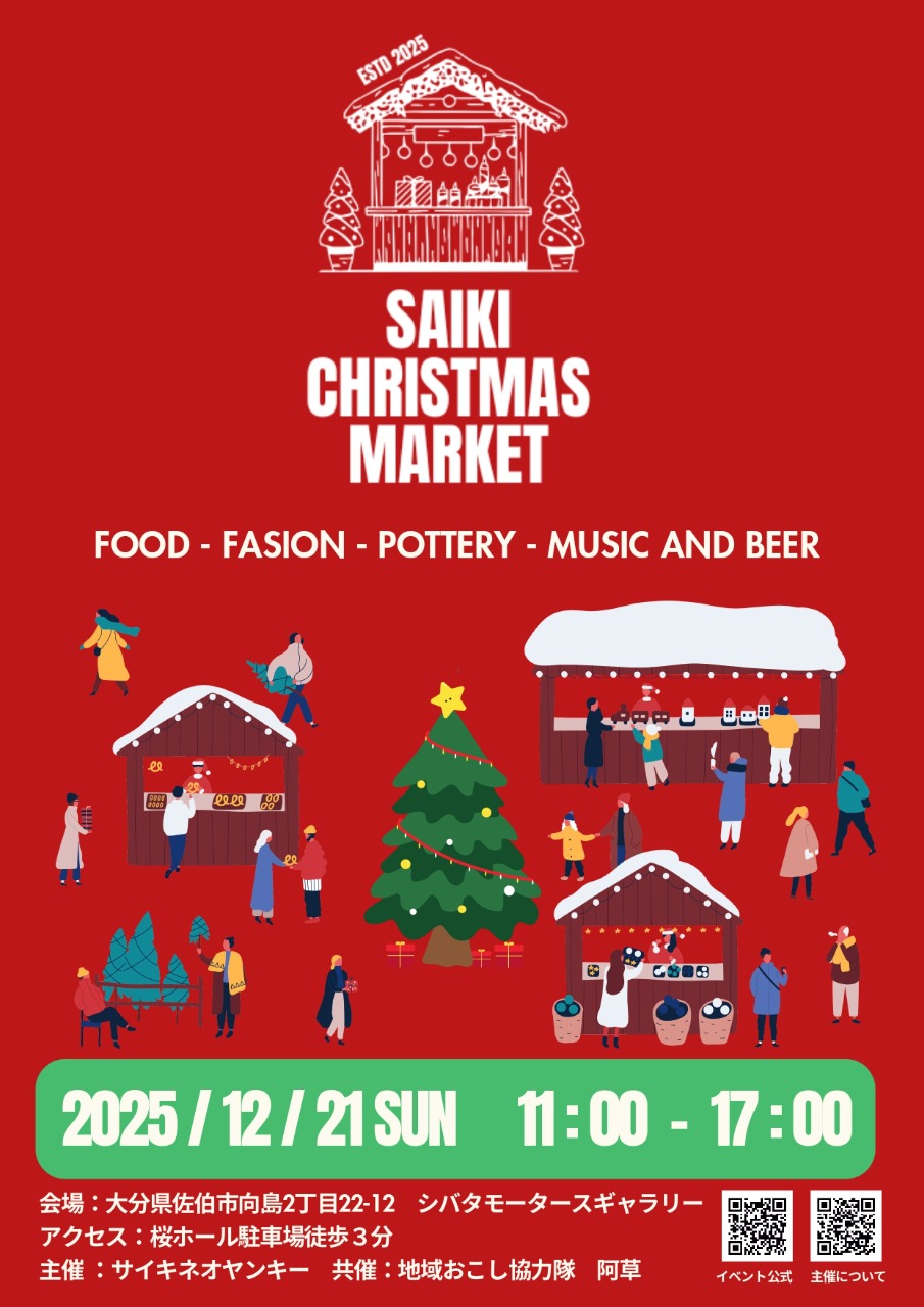 佐伯市ではめずらしいクリスマスマーケット🎄が開催されます。
