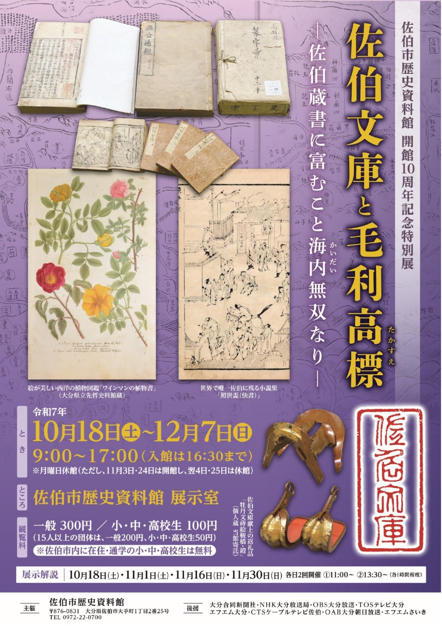特別展では、佐伯文庫の貴重書の数々と毛利高標の実像を伝える資料を一堂に展示します。