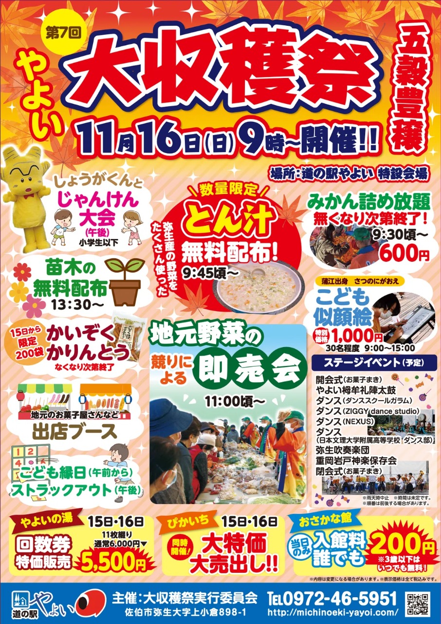 ぜひ、11月16日(日)は皆さんで 道の駅 やよい へ、お立ち寄りください。