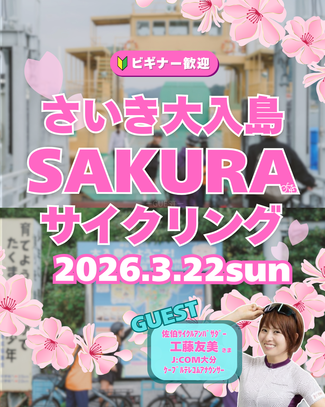 佐伯サイクルアンバサダー 工藤 友美 氏(J:COM 大分ケーブルテレコム アナウンサー)が参加予定です。