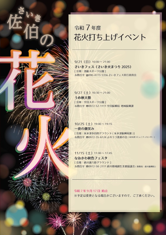 今年、佐伯市内で開催される花火打ち上げイベント情報についてお知らせします!